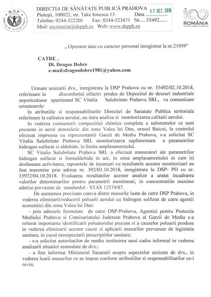 • Să notifice Agenția pentru Protecția Mediului Prahova în vederea stabilirii obligațiilor de mediu pentru închiderea depozitului.