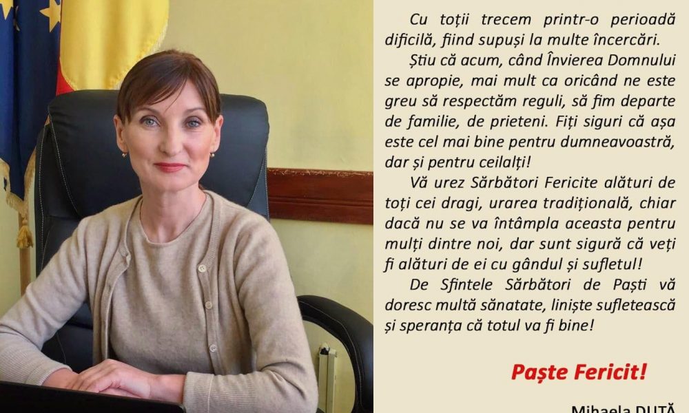 De Sfintele Sarbatori de Pasti va doresc multa sanatate, liniste sufleteasca si speranta ca totul va fi bine! – Mihaela Duta – Subprefect al judetului Prahova