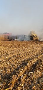 Aici pompierii se luptau cu focul, iar cel mai implicat in actiune a fost propietarul unei asociatii agricole din Tarsorul Nou, care a fost nevoit sa isi trimita muncitorii la propiu in foc sa are 3,5 hectare de porumb pentru a salva alte 50 de hectare de cultura.