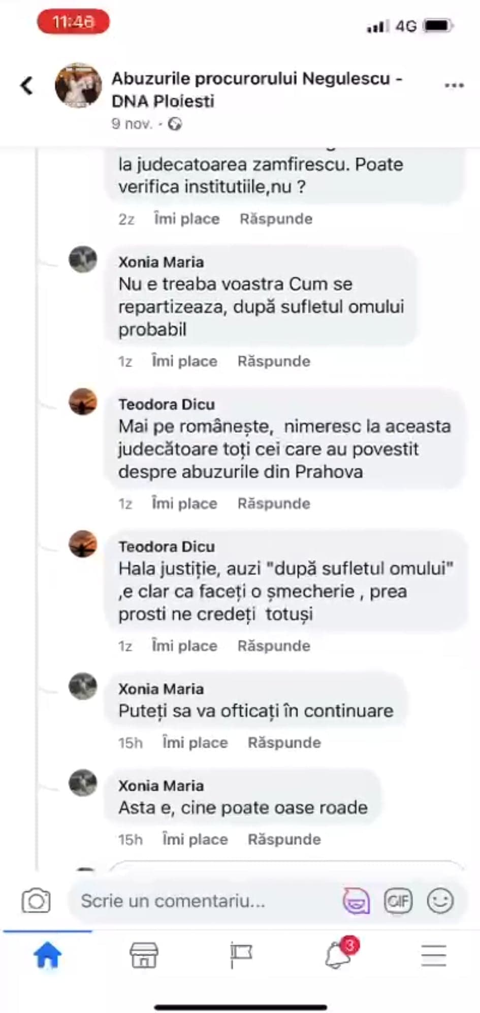 In aceste articole precizam ca, ofiterul judiciarist din cadrul IPJ Prahova, Popescu Ana Maria, actuala sotie a procurorului Negulescu Mircea utillizeaza contul de facebook Xonia Maria prin care santajeaza public doi judecatori: Dinu si Teisanu.