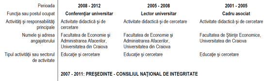 Apoi începe o ferventă deghizare ,,telectuală” cu două facultăți și un doctorat în 2004, la Universitatea din Craiova, unde în 2001 devenise cadru asociat, în 2005 lector universitar, iar în 2008 conferențiar universitar. Practic 11 ani (2001-2012) le predă studenților etică, moralitate și să nu fure, prestând ,,activitate didactică și de cercetare”. Semnând zeci de articole ,,științifice” într-o limbă pe care nu o cunoaște. Apoi devine profesor.