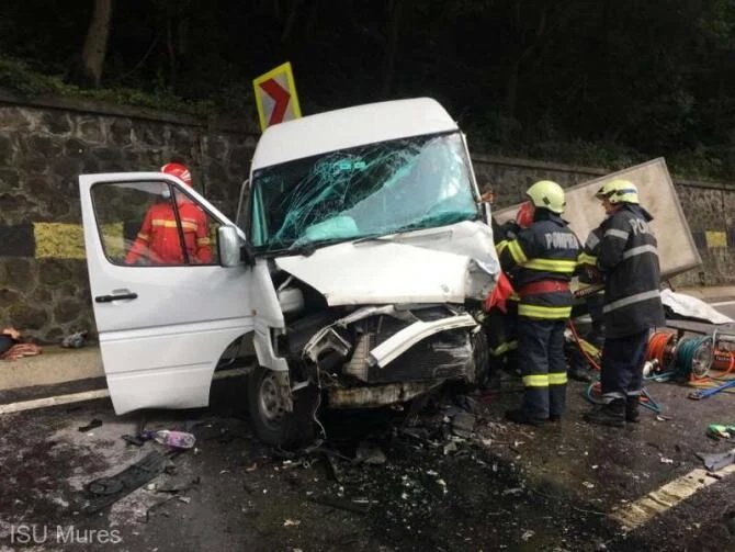 În urma accidentului a rezultat vătămarea corporală a 13 persoane, respectiv a celor doi conducători auto, precum şi a trei pasageri din autoturism, dintre care doi minori, de 2 şi 5 ani şi a altor 8 pasageri din microbuz, cărora li se acordă îngrijiri medicale la faţa locului, urmând a fi transportaţi la unitatea spitalicească în vederea acordării de îngrijiri medicale de specialitate”, transmit reprezentanţii IPJ Mureş, potrivit Agerpres.