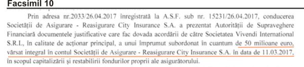 – printr-un împrumut către societatea afiliată City Invest, ca să cumpere drepturi litigioase de retrocedare, sifonând 83,2 milioane de lei din banii asiguraţilor către sora City Invest;