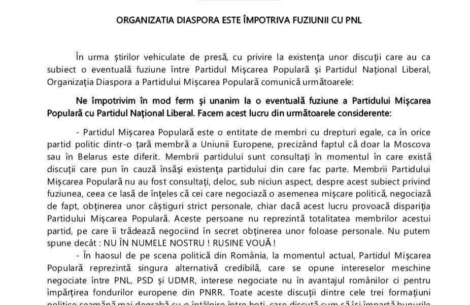 ORGANIZATIA DIASPORA ESTE ÎMPOTRIVA FUZIUNII CU PNL/ORGANIZATIA DIASPORA este alaturi de Presedintele Cristian Diaconescu si IMPOTRIVA “puciștilor” din PMP/Lovitura de teatru pentru gruparea de crima organizata din PMP – Ziarul Incisiv de Prahova