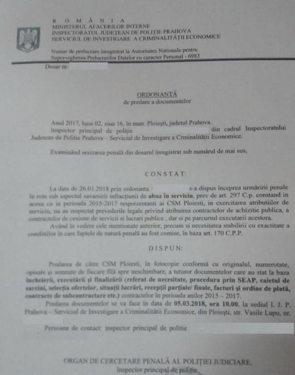 Aceste aspecte sunt investigate, cu multa lejeritate si comoditate, de organele din cadrul IPJ Prahova.