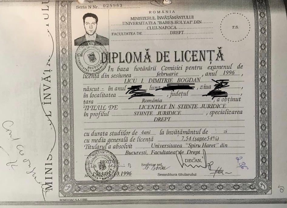 Zece luni mai târziu, la 1 decembrie 1996, în baza acestei diplomei de absolvire, Bogdan Licu devenea procuror.