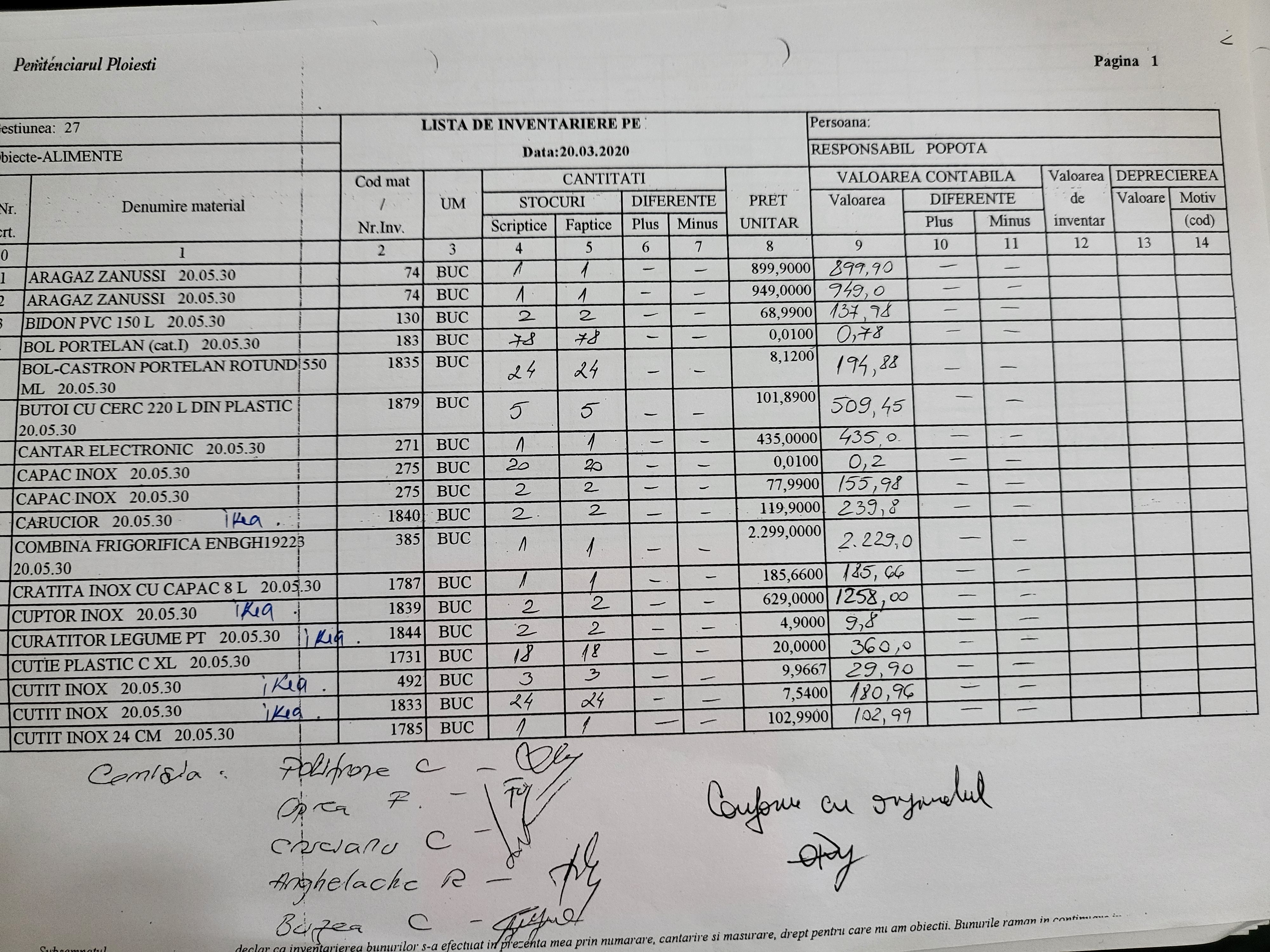 „Mentionez ca la data de 23.03.2020, comisia de inventariere NU a inventariat obiectele de inventar eu am semnat lista in necunostinta de cauza (crezand ca lista cu alimente e in dublu exemplar)”.