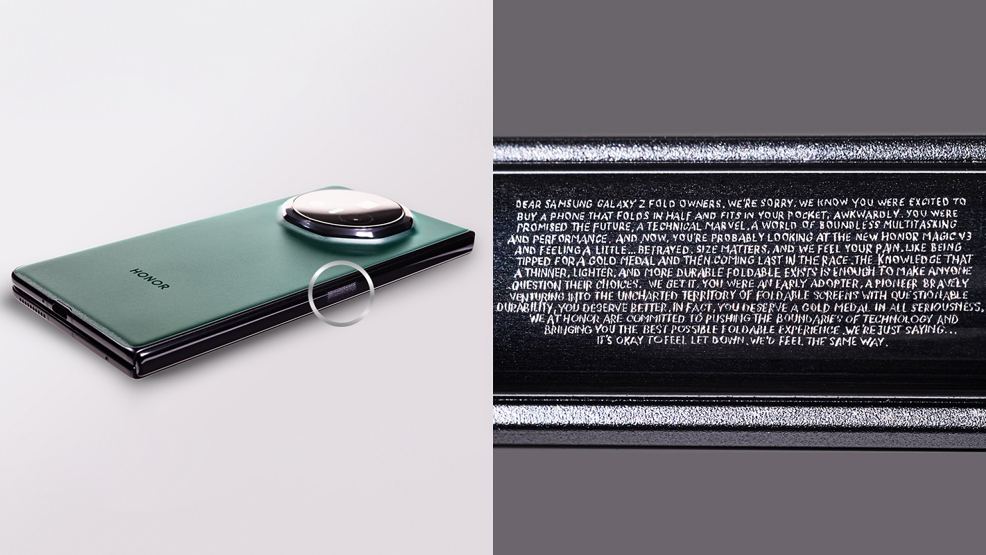 „Înțelegem importanța dimensiunii și că achiziționarea unui smartphone pliabil mai voluminos și mai greu înainte de lansarea Magic V3 ar fi putut provoca anumite inconveniențe. Ne prețuim profund clienții și ne dorim să le oferim acces la cea mai avansată tehnologie. Deși scuzele noastre sunt gravate discret, ele exprimă sincer empatia noastră față de cei care privesc acum cu interes către Magic V3.” a declarat Avikar Jolly, CMO al HONOR EUROPE.
